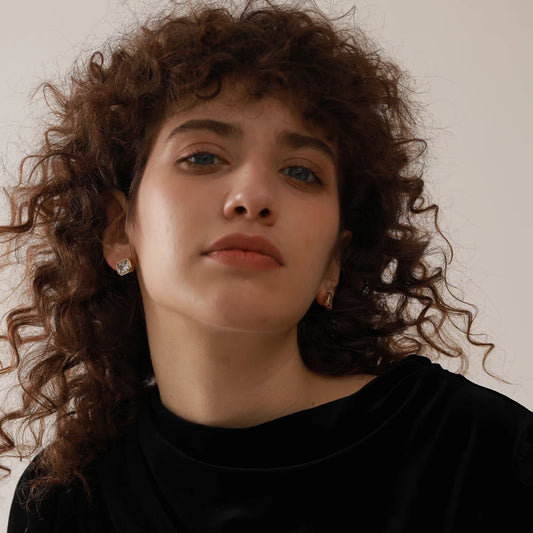 Square Pearl Stud Earring - Gold & Silver