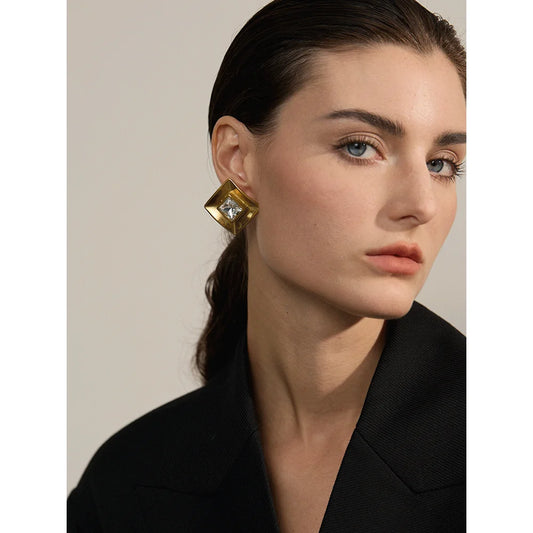 Round Pearl Zirconia Stud Earring - Gold & Silver