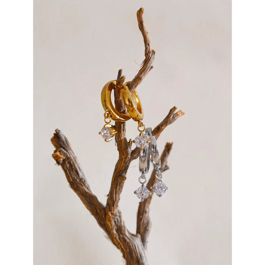 Twisted Zirconia Hoop Earring - Gold & Silver