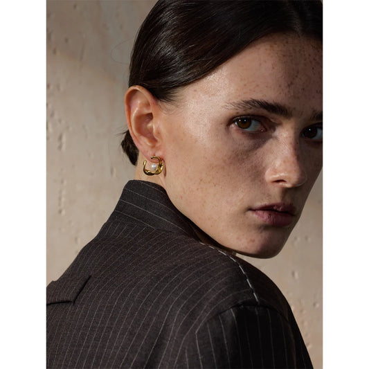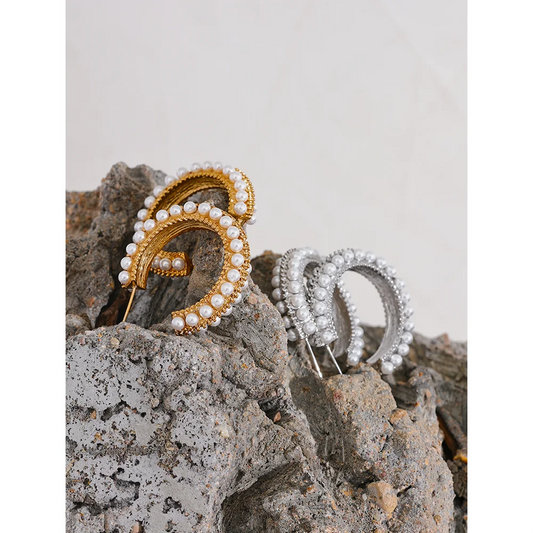 C-Shaped Pearl Hoop Earring - Gold & Silver
