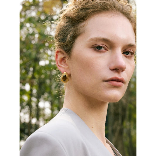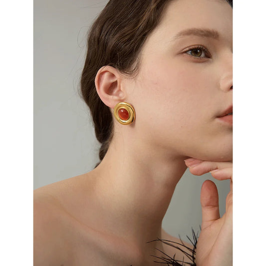 SAVE 58%Red Black Stone Stud Earring - Gold