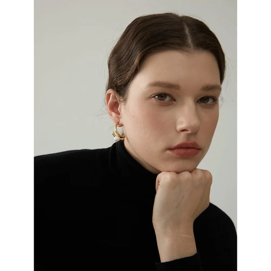Modern Pearl Huggie Earring - Gold & Silver