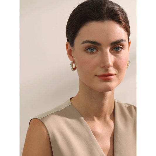 Pearl Zirconia Stud Earring - Gold & Silver