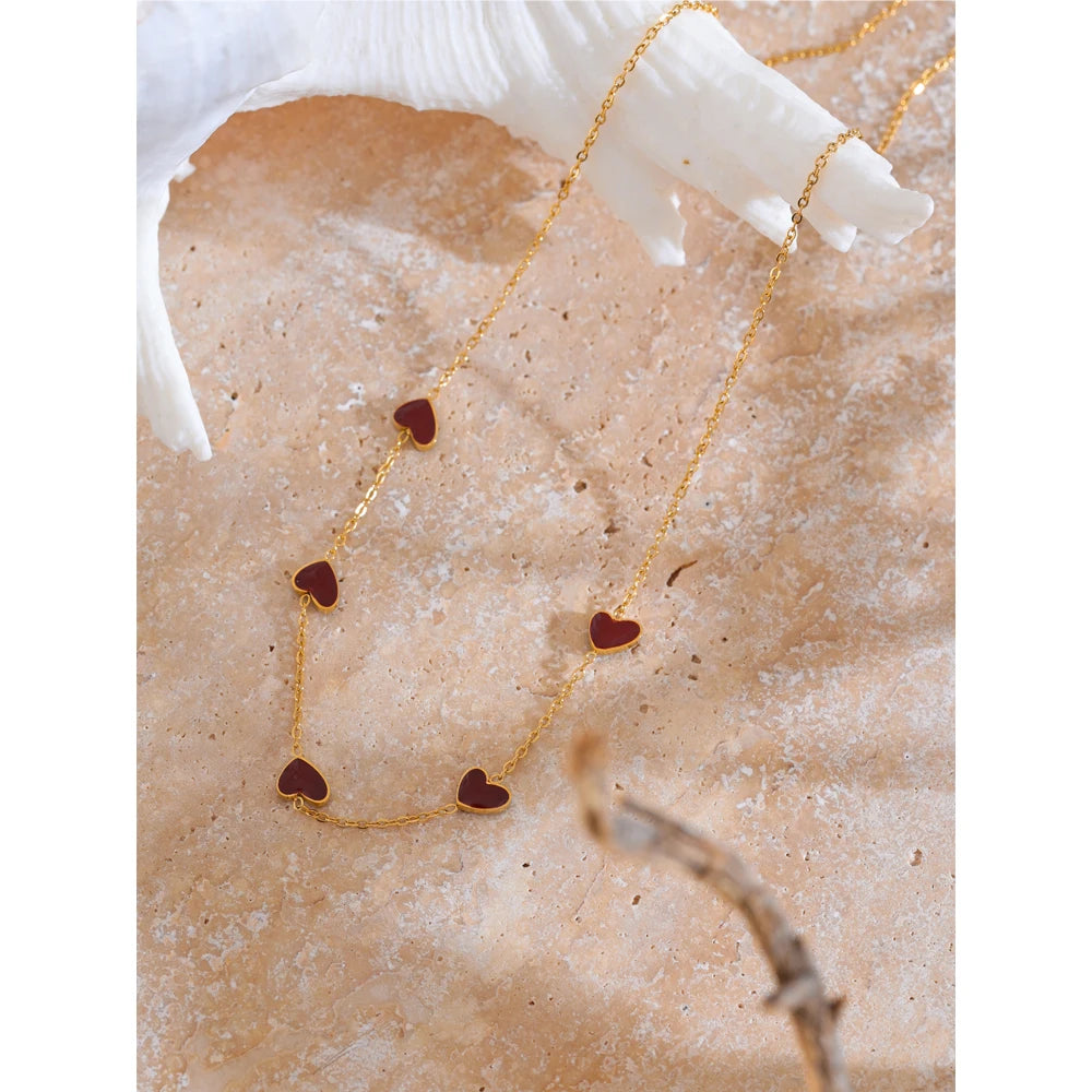Discover the allure of the Scarlet Heart Necklace - Gold, a perfect blend of sophistication and charm. This exquisite piece is designed for the modern woman who appreciates the finer things in life. Crafted from premium stainless steel and adorned with delicate red enamel hearts, this necklace is a testament to impeccable taste and timeless style.